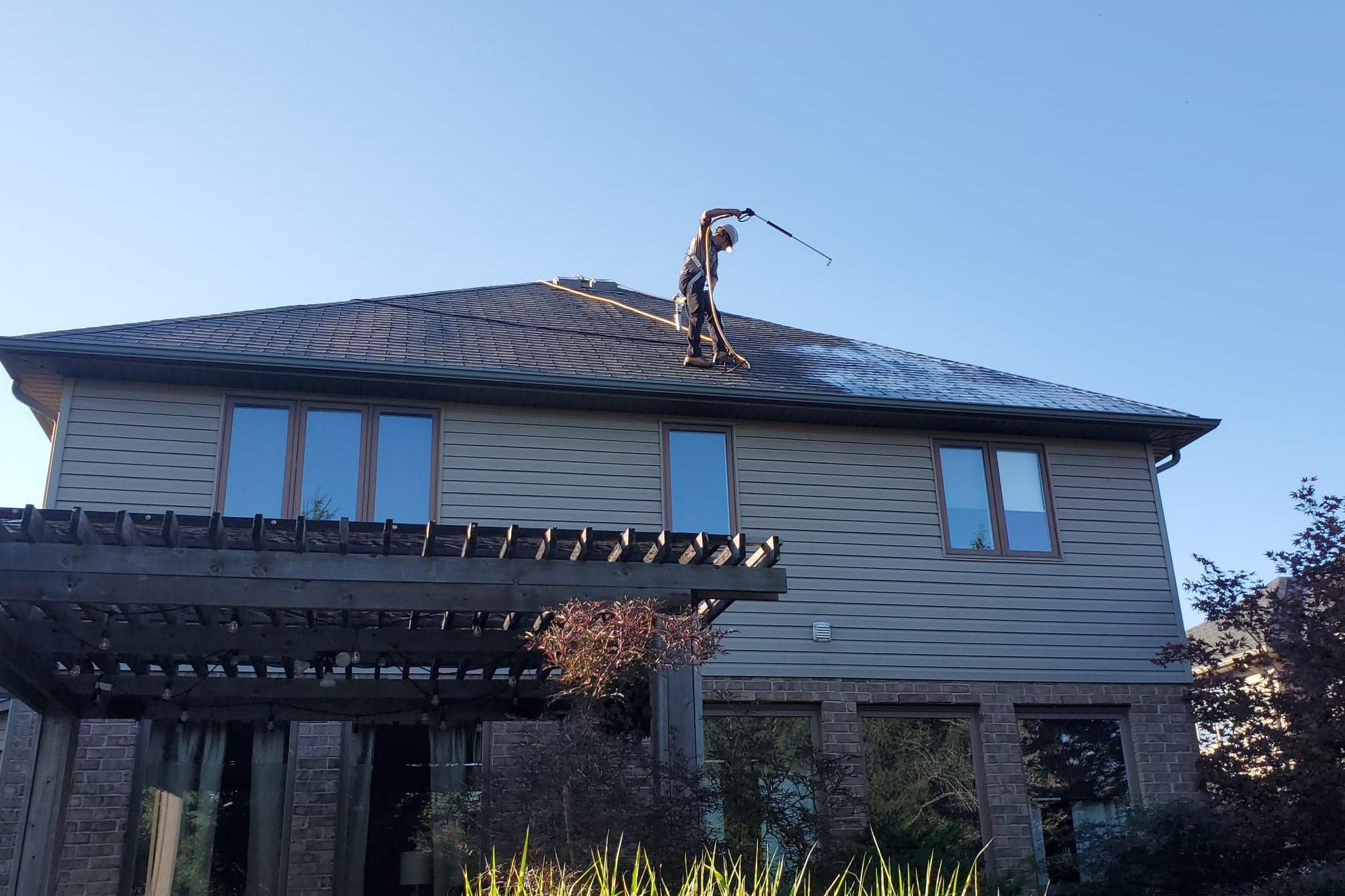 Our core service. Plant-based treatment restores aging shingles and prolongs roof life by 5–15 years.